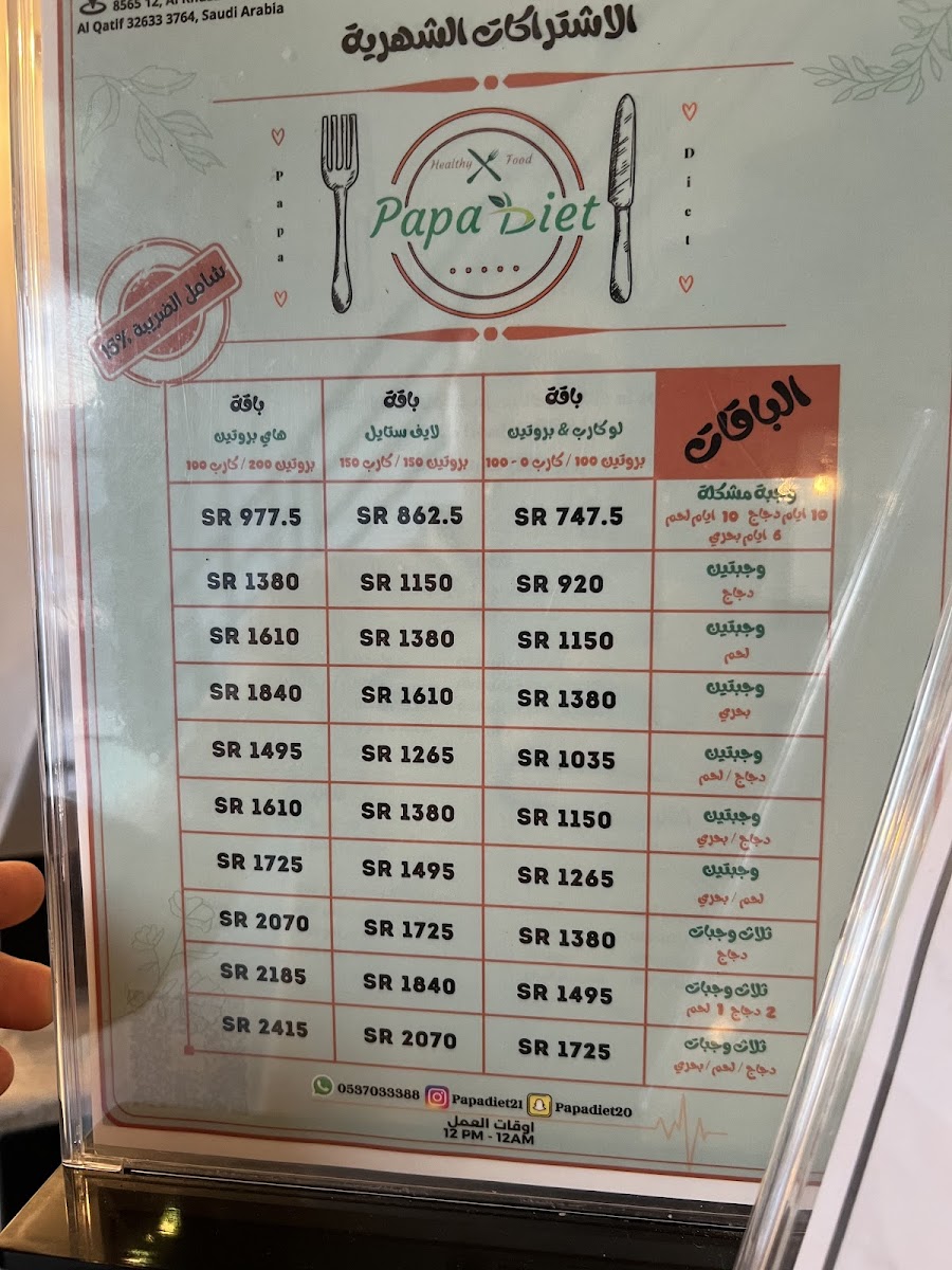 Welcome to Papa Diet بابا دايت, your go-to destination for healthy yet delicious meals in Al Qatif, Saudi Arabia. Nestled at 8565 12, Al Khuzama, this culinary gem is dedicated to offering a menu that caters to health-conscious diners without compromising on flavor.